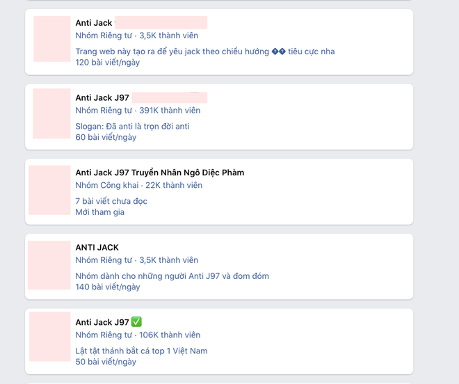 19/08/2021 23:20Jack gặp biến mới: Loạt group antifan 'mọc lên như nấm', nhóm lớn cán mốc gần 23.000 thành viên sau bê bối tình ái