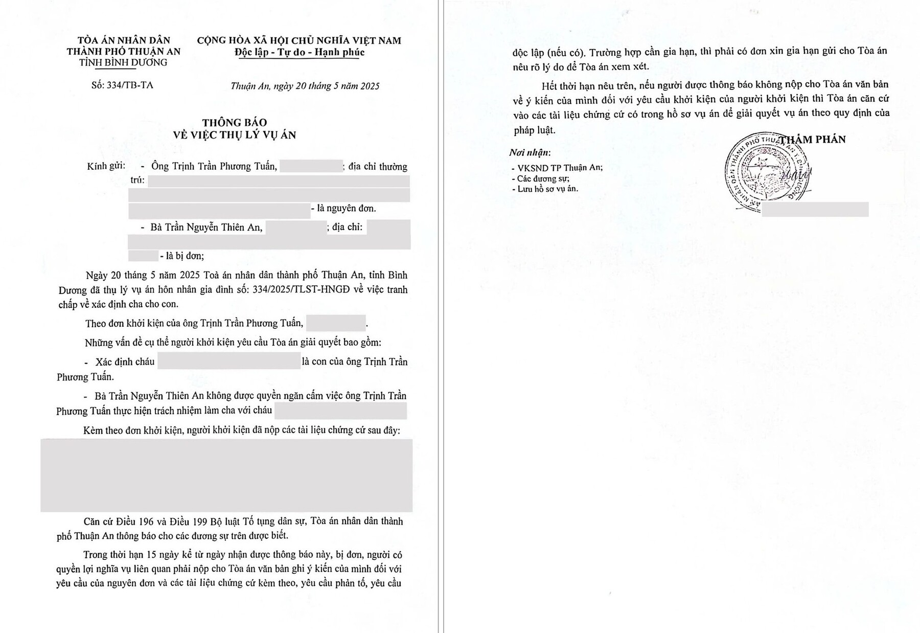 Theo đó, Tòa án nhân dân thành phố Thuận An, tỉnh Bình Dương đã chính thức tiếp nhận và thụ lý đơn kiện của Jack vào ngày 20/5/2025.