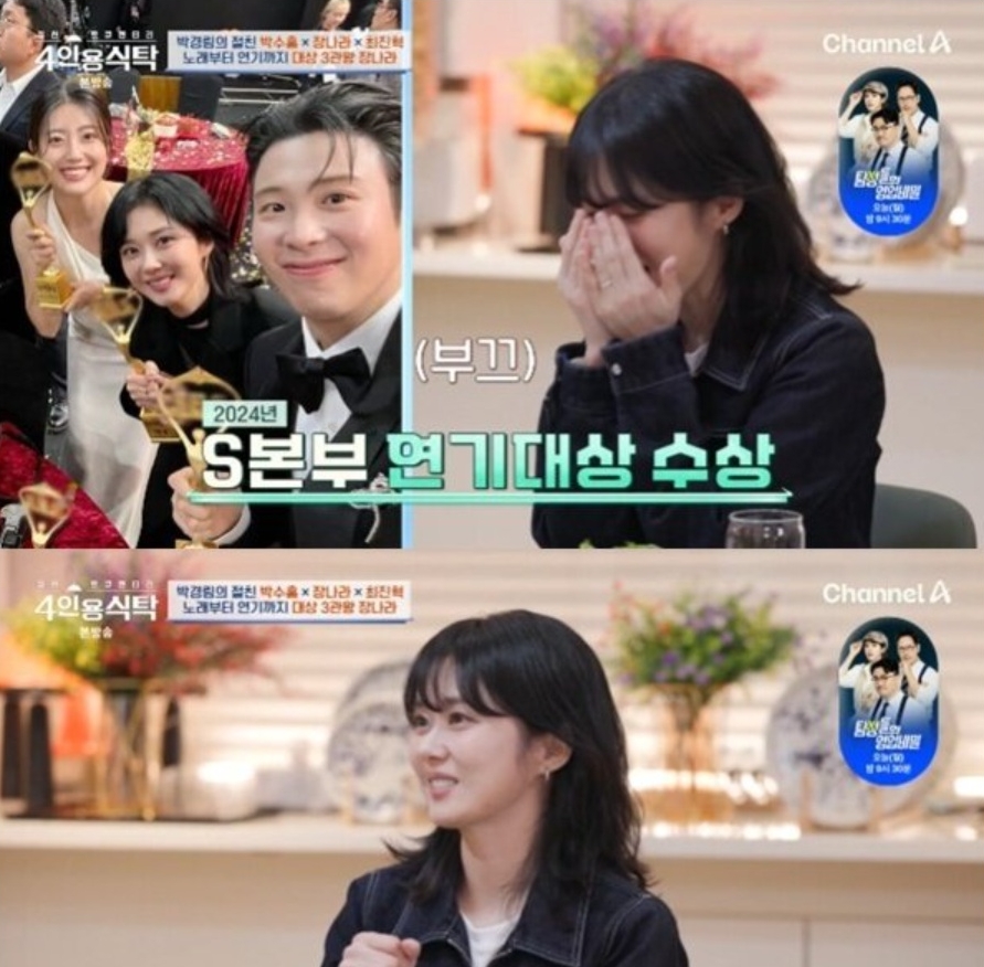 Theo lời Jang Nara, ông xã đã lái xe tới đón cô sau lễ trao giải SBS Drama Awards cách đây ít tháng. Trong xe ô tô, nữ diễn viên sinh năm 1981 bật khóc nức nở trước mặt chồng mình vì quá xúc động sau khi được tôn vinh tại lễ trao giải danh giá và nói: "Em thật sự đã giành được giải thưởng này rồi". Nhà quay phim Jung Ha Cheol chứng kiến bà xã òa khóc đã tỏ ra khá bối rối, lúng túng, không biết xoay xở thế nào trong giây lát. Cũng trong chương trình Best Friend Documentary: Table for 4 mới đây, Jang Nara bồi hồi nhớ lại chiếc cúp Daesang cô từng nhận được cách đây 23 năm trước tại lễ trao giải âm nhạc KBS Music Awards: "Tôi luôn nghĩ rằng giải Daesang sẽ về tay người khác".