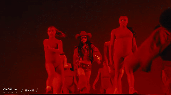 Sự xuất hiện của Jennie mở ra set diễn 13 ca khúc gồm Filter, Mantra, Handlebars, start a war, ZEN, F.T.S, Damn Right, Love Hangover, Seoul City, ExtraL, with the IE, LIKE JENNIE và Starlight. Mỹ nhân sinh năm 1996 diện lên mình bộ outfit nguyên cây đỏ bằng da, mang đúng tinh thần boho viễn tây miền sa mạc Coachella, Colorado.