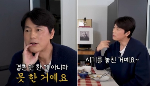 Đối với câu hỏi này, thay vì trốn tránh, Jung Woo Sung lại rất thoải mái khi trả lời rằng: "Không phải tôi không kết hôn, mà là tôi không thể. Tôi đã bỏ lỡ thời điểm 'vàng' rồi. Tôi là diễn viên đầu tiên trong ngành giải trí đứng ra tuyên bố bản thân có bạn gái".