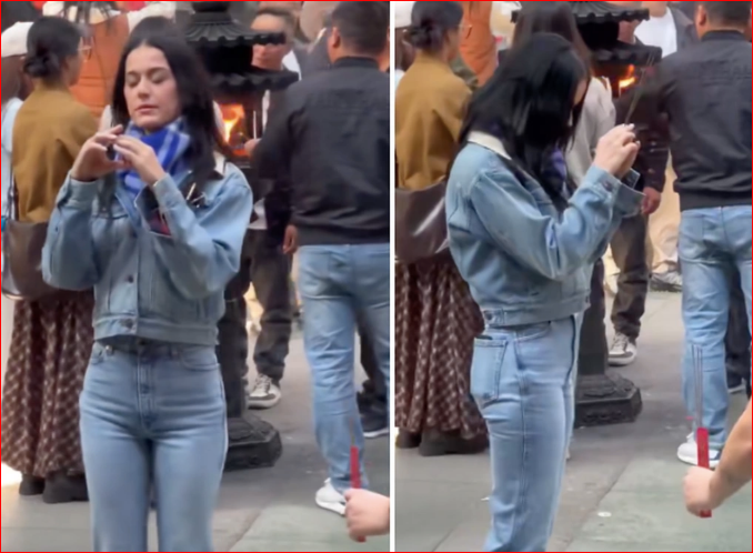 Trong đoạn video được người qua đường ghi lại, Katy Perry cẩn thận cầm nén hương, chắp tay cầu nguyện và vái tứ phương. Những cử chỉ thành kính, xen lẫn chút bỡ ngỡ của một du khách nước ngoài lần đầu trải nghiệm văn hóa chùa chiền khiến cộng đồng mạng thích thú và chia sẻ rộng rãi. Nhiều ý kiến khen ngợi nữ ca sĩ vì tôn trọng văn hóa địa phương, lựa chọn trang phục kín đáo và hành xử lễ độ.