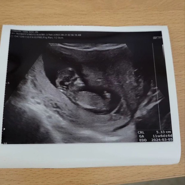 Cũng trong buổi sáng 6/9, Kangjun đăng tải lên Instagram hình ảnh siêu âm thai nhi, đồng thời thông báo bà xã anh đã mang thai chỉ sau 1 tháng kết hôn. Vợ cựu thành viên C-Clown được dự sinh vào tháng 3 năm sau. Hiện tại, 2 vợ chồng đã bắt đầu chuẩn bị sắm đồ cho em bé sắp chào đời trong tâm trạng phấn khởi.