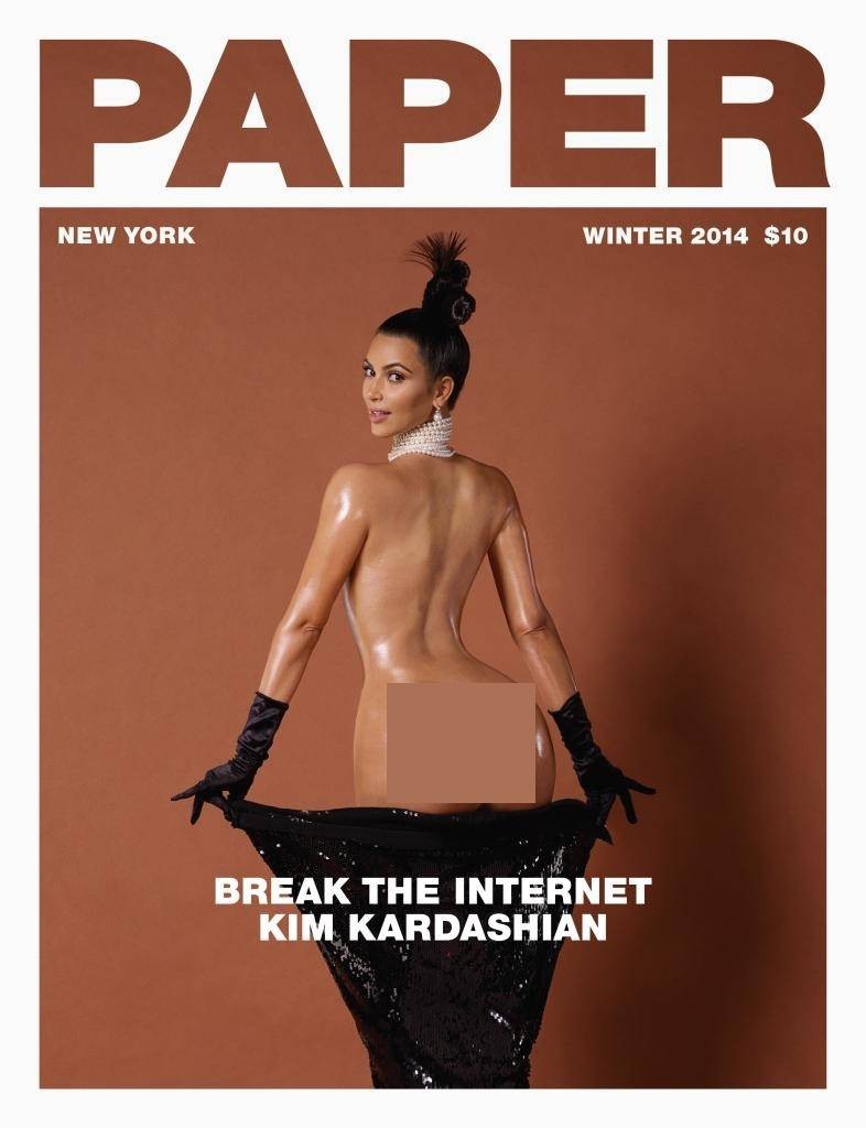 Tháng 11/2014, Kim Kardashian gây tranh cãi khi xuất hiện trên trang bìa tạp chí Paper với “siêu vòng ba” trần trụi, kèm thông điệp: “Làm bùng nổ internet cùng Kardashian”.