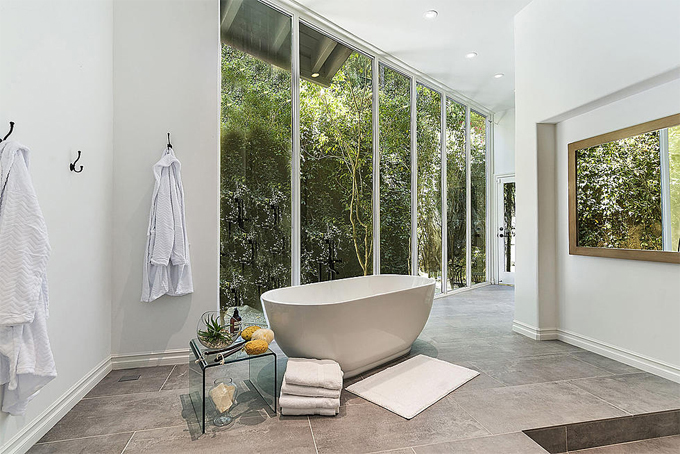 Một trong những phòng tắm rộng rãi đón ánh sáng tự nhiên tràn ngập. Trước khi mua biệt thự này, Selena ở ngôi nhà phong cách bungalow 2,2 triệu USD tại Studio City, Los Angeles. Nữ ca sĩ 27 tuổi từng rất yêu ngôi nhà cũ nhưng quyết định chuyển đi vì muốn có một nơi ở mới rộng và riêng tư hơn.