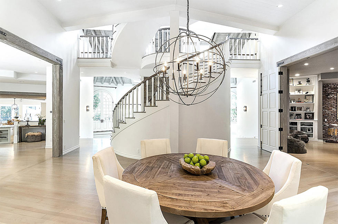 Tổng diện tích ngôi nhà (tính cả vườn) hơn 11.000 m2, bao gồm 3 tầng lầu với 6 phòng ngủ, 10 phòng tắm, phòng tập yoga, spa, thư viện, hầm rượu, phòng thu âm, quầy bar... Gam trắng kem trở thành tông màu chủ đạo, mang tới cái nhìn nhã nhặn, tối giản nhưng vô cùng sang trọng.