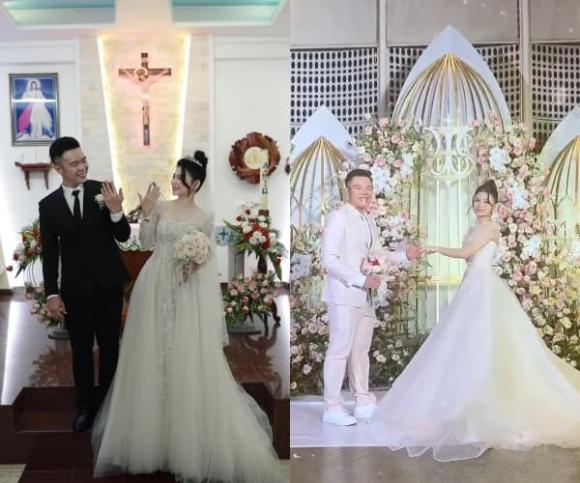 Cho đến mới đây, Khánh Thi và Phan Hiển đồng loạt đăng tải loạt ảnh lung linh trong một lễ đường đám cưới. Trong ảnh, Khánh Thi diện một chiếc váy bồng bềnh, được đính kết kĩ càng từng chi tiết và vô cùng lộng lẫy, còn Phan Hiển khoe vẻ điển trai, bảnh bao trong bộ vest đen không khác gì chú rể.