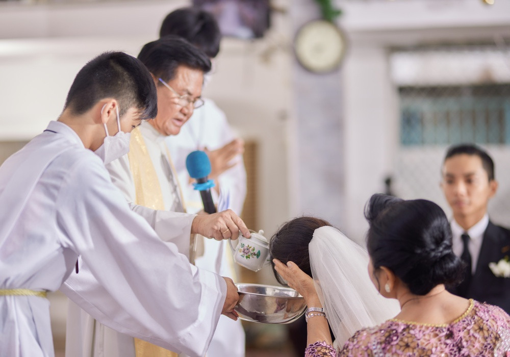 Sáng 17/12, vợ chồng Khánh Thi và Phan Hiển tổ chức lễ cưới tại nhà thờ Giáo xứ Thánh mẫu Phú Nhuận, TP.HCM. Buổi lễ diễn ra theo nghi thức Thiên Chúa giáo, với sự chứng kiến của các thành viên trong gia đình cô dâu và chú rể.