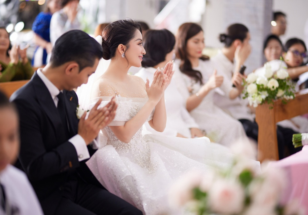 "Đây là buổi lễ có ý nghĩa quan trọng đối với tôi và Hiển. Vì khi làm lễ thành hôn trong nhà thờ mới được công nhận là vợ chồng. Đó là điều ý nghĩa nhất với người theo đạo và quan trọng nhất với gia đình Hiển", cô nói.