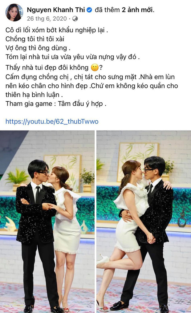 Ngày 26/6/2020, bà xã Phan Hiển ẩn ý: "Cô dì lối xóm bớt khẩu nghiệp lại. Chồng tôi thì tôi xài, vợ ông thì ông dùng. Tóm lại nhà tôi ưa vừa yêu vừa nựng vậy đó. Thấy nhà tôi đẹp đôi không? Cấm đụng chồng chị, chị tát cho sưng mặt. Nhà em lùn nên kéo chân cho hình đẹp, chứ em không kéo quần cho thiên hạ bình luận".