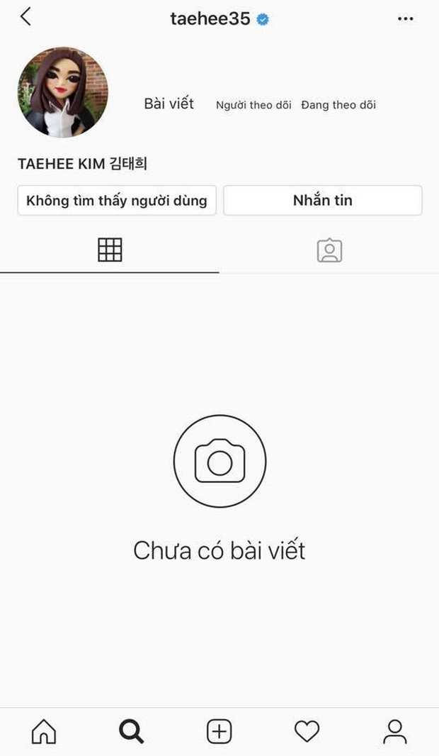 Instagram của Kim Tae Hee bất ngờ chỉ còn lại những khoảng trắng, tất cả số người like và follow đều đã biến mất, chỉ để lại hình avatar và profile của nữ diễn viên.