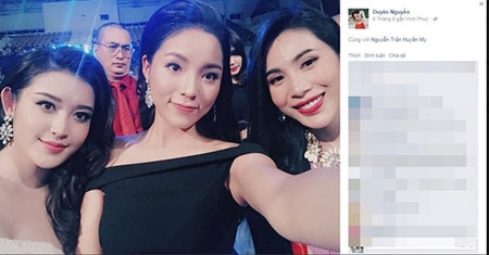 Cùng xuất hiện tại VTV Awards với Huyền My và Thủy Tiên, Kỳ Duyên không quên selfie để update facebook. Và tất nhiên, cô cũng là người xinh nhất ở góc chụp của bức ảnh này |