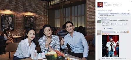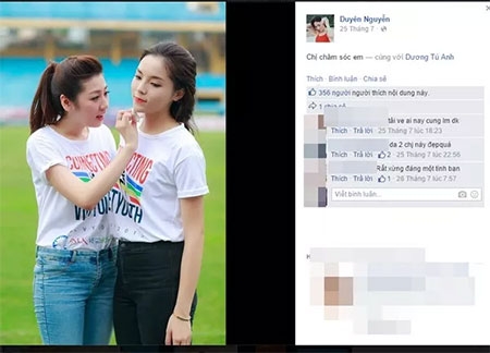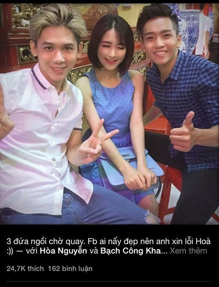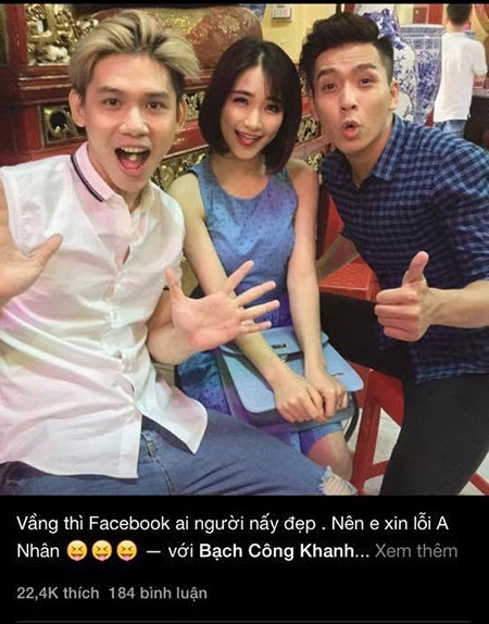 Đại Nhân đăng ảnh trên facebook chụp cùng Hòa Minzy và công khai phương châm "facebook ai người đó đẹp" kèm lời xin lỗi dí dỏm tới Hòa Minzy |