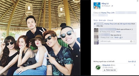 Trên Facebook Minh Hằng cũng có bức ảnh check in cùng thời điểm. Không khó để nhận ra hai bức hình ảnh không khác nhau nhiều lắm và có lẽ được chụp từ cùng một chiếc máy. Tuy nhiên, so với bức ảnh bị mũ che lấp nhiều trên facebook Hoàng Thùy Linh thì ở bức ảnh này Minh Hằng chu mỏ nhí nhảnh hơn nhiều |