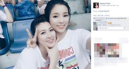 Trong khi đó, Tú Anh đăng tải bức hình selfie thân mật của hai chị em được chụp bằng điện thoại. Ở bức ảnh này, Tú Anh có nụ cười tươi tắn đầy sức sống. Kỳ Duyên cũng khá vui vẻ tuy nhiên cô cười không được tự nhiên cho lắm và góc chụp thẳng khiến mặt Kỳ Duyên cũng không được xinh như chụp nghiêng |