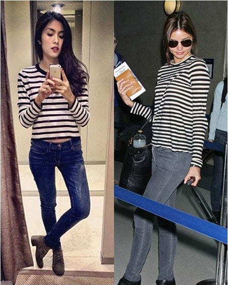 Một sự trùng hợp ý tưởng nữa giữa thời trang dạo phố của hai cô nàng. |