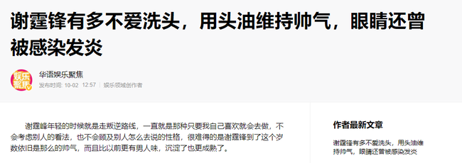 Mới đây, trang Baijiahao có đăng tải thông tin không ai ngờ tới khi tiết lộ việc Tạ Đình Phong là một người vô cùng cổ quái. Theo đó, để giữ được mái tóc lãng tử, Tạ Đình Phong thường xuyên không gội đầu.