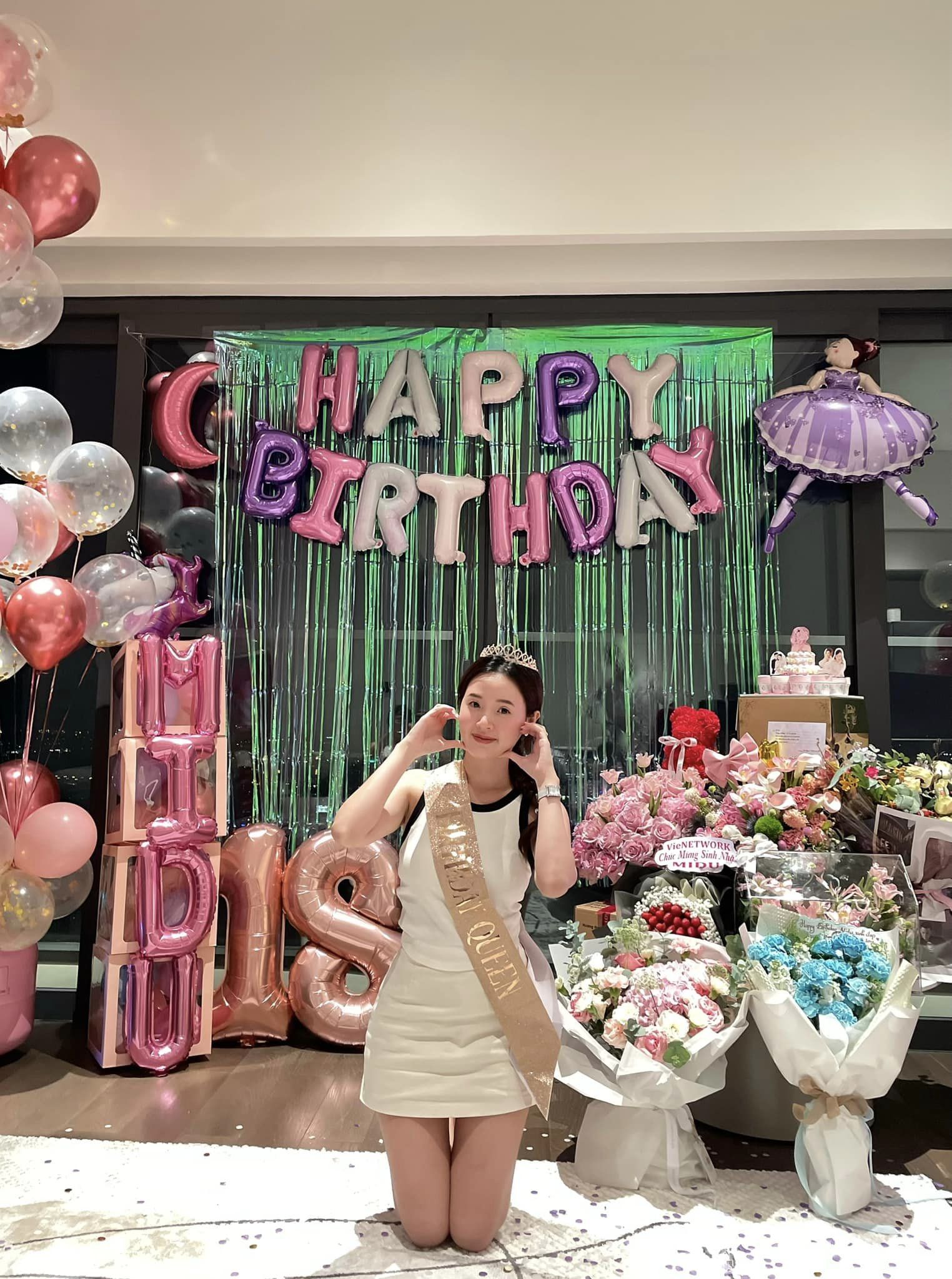 Mới đây, trên trang cá nhân, Midu "xả kho" loạt ảnh đón sinh tuổi mới. Buổi tiệc được tổ chức ấm cúng, không gian trang trí bong bóng và hoa sặc sỡ. Midu diện bộ trang phục đơn giản, đeo kính khiến visual càng thêm "hack tuổi".