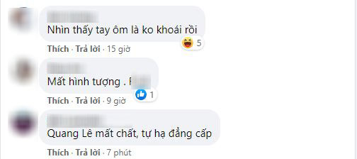 Ngay lập tức, hình ảnh này của cả hai thu về một lượng lớn bình luận chỉ trích: "Nhìn cách chụp ảnh thiếu thiện cảm ghê", "Sao Ngân 98 không biết giữ khoảnh cách vậy", "Tay thì đeo nhẫn của Lương Bằng Quang, nhưng sao ôm ấp người khác thế này", "Không hiểu sao mà có thể chụp ảnh sát rạt như thế nữa, trông rất kì cục. Mình cảm nhận bất kì tấm ảnh nào của Ngân 98 cũng gây tranh cãi thế nhỉ?", "Mất hình tượng quá chú Quang Lê ơi"...