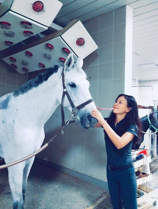 Trong loạt hình được đăng tải, bà xã Jang Dong Gun thể hiện sự thích thú với việc cưỡi ngựa - môn thể thao của giới thượng lưu. Bên cạnh golf thì cưỡi ngựa chính là môn thể thao siêu sang chảnh mà chỉ có giới thượng lưu mới dám chơi. Vẻ đẹp lộng lẫy và trẻ trung không chịu tác động từ chuyện tuổi tác của Go So Young thu hút sự chú ý.