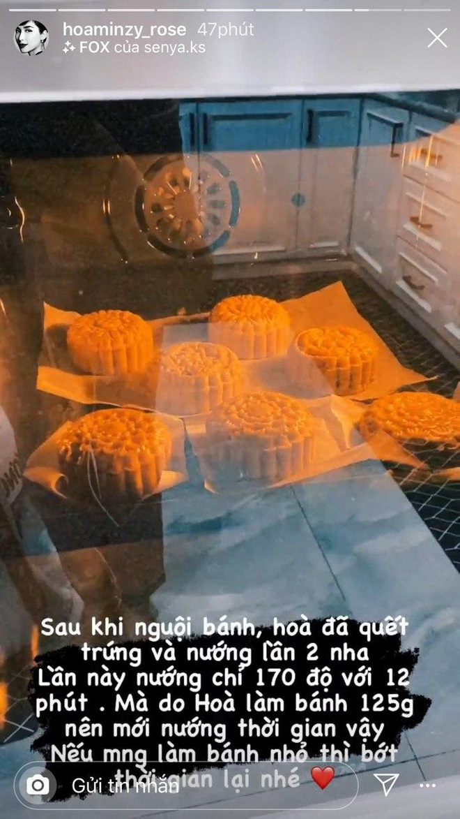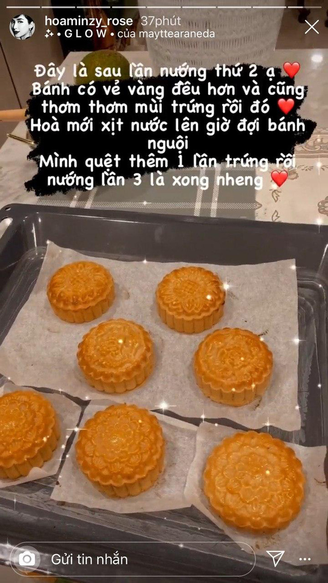 Sau bánh bao, bánh bông lan, Hòa Minzy tiếp tục thử sức với bánh trung thu và đạt được kết quả mĩ mãn: hình thù đẹp mắt, màu sắc hấp dẫn, không bị quá lửa và rất vừa ăn.