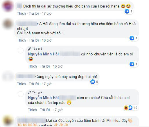 Phía dưới bài đăng, không ít người cũng hùa theo Minh Hải để trêu Hòa Minzy: "Hòa ơi chuyển khoản cho ảnh đi", "Đích thị là đại sứ thương hiệu cho bánh của Hoà rồi", "Sao dạo này anh làm nhiều nghề thế", "Chuyển nghề thôi anh ơi",...