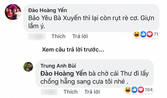 Tuy trên phim cam chịu là vậy nhưng ở ngoài đời, nghệ sĩ Trung Anh lại có động thái cứng rắn hơn nhiều. NSƯT thay ảnh đại diện thành Lương Bổng - nhân vật anh từng đảm nhận trong "Người phán xử" và có lời đáp trả cực "gắt" khi "con gái" cùng hai anh "con rể" bình luận phía dưới.