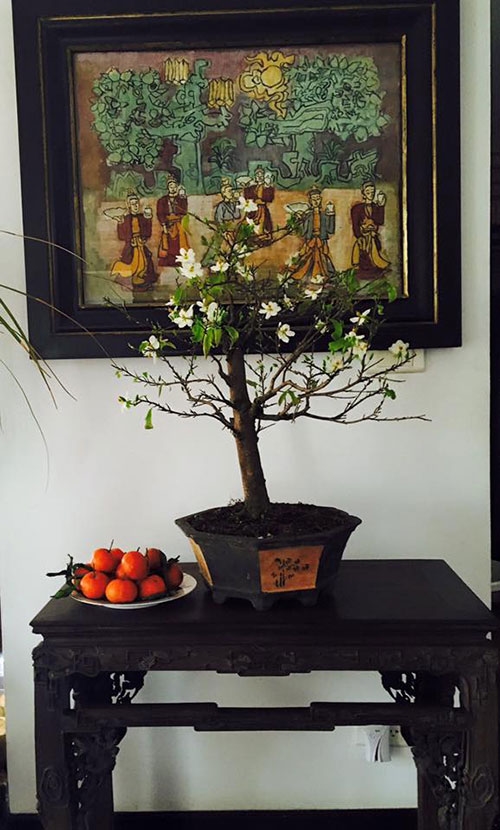 Từ ngoài sân đến trong nhà đều rộn ràng sắc xuân |