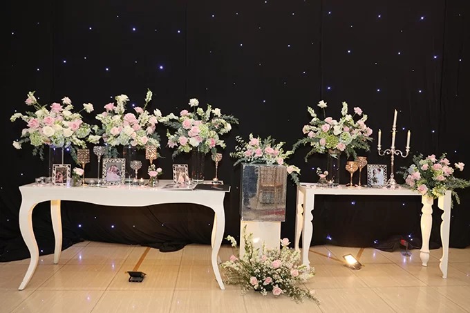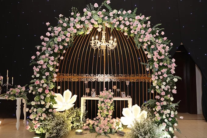 Bữa tiệc ngày 17/7 của giọng ca 'Thanh xuân từng đẹp đến thế' được trang trí với tông hồng - trắng, tựa 'khu vườn tình yêu'.