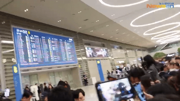 Chiều 15/5, Kim Ji Won đã có mặt tại sân bay quốc tế Incheon (Hàn Quốc) sau khi hoàn thành lịch trình ở Singapore. Người hâm mộ đã tập trung rất đông tại sân bay từ sớm để chào đón nữ diễn viên. Ngay khi mỹ nhân họ Kim xuất hiện, đám đông khán giả ngay lập tức "vỡ trận", tiếp cận nữ diễn viên để tương tác, tặng quà. Bị người hâm mộ quây kín, Kim Ji Won phải rất khó khăn mới có thể di chuyển nhưng cô vẫn giữ nụ cười tươi trên môi.