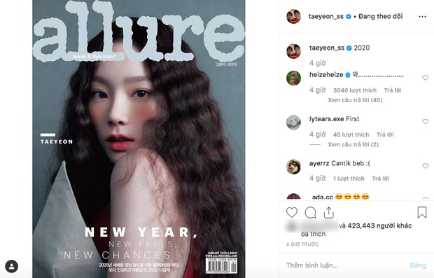 Tuy nhiên, trong bài đăng mới nhất cách đây ít giờ, Taeyeon đã đăng tải hình chụp tạp chí mới với chú thích năm mới: "2020" khiến các fan yên tâm phần nào.
