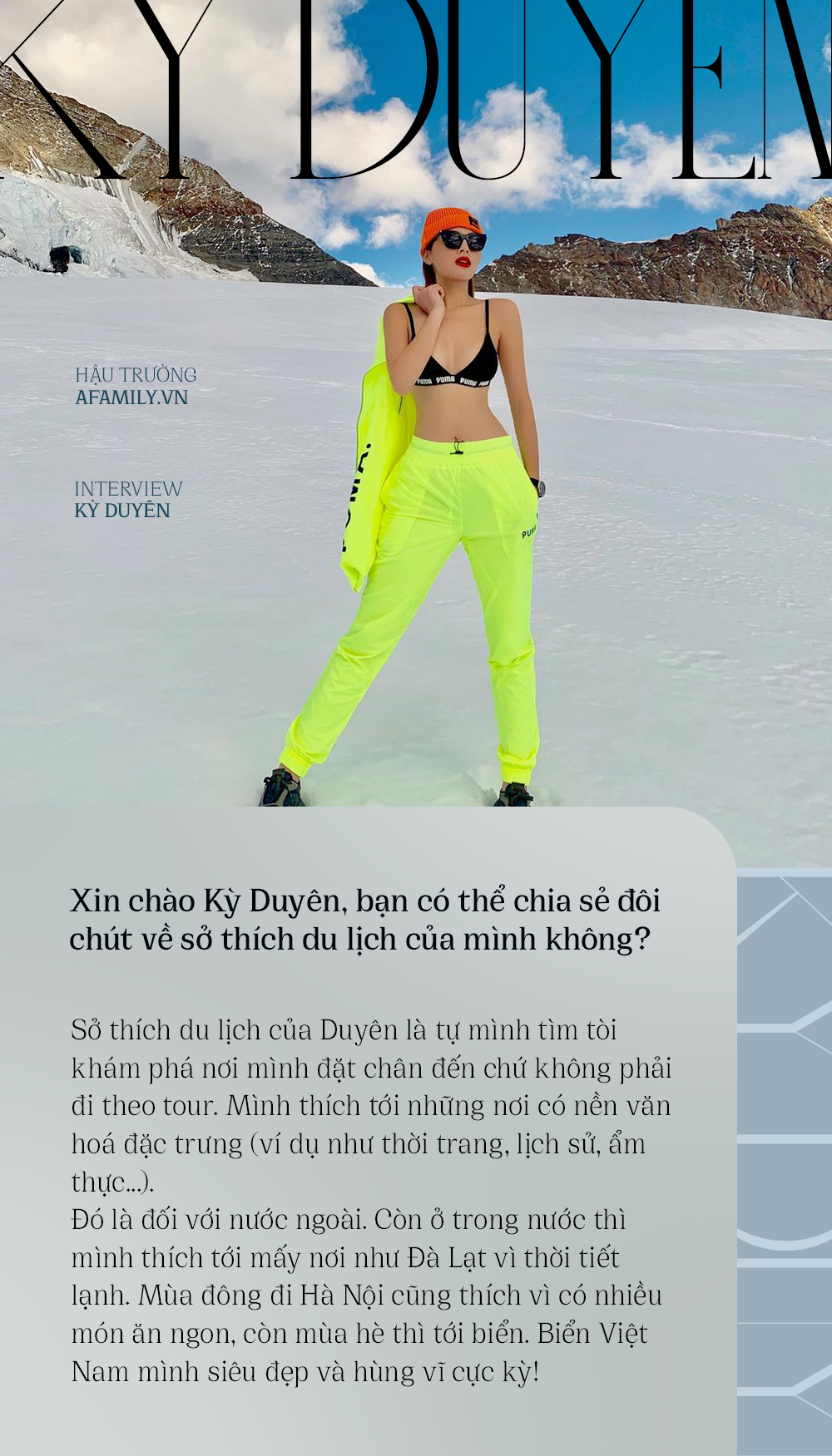 Gắn liền với hình ảnh một Hoa hậu gợi cảm, sang chảnh nhưng Kỳ Duyên cũng vô cùng cá tính và yêu thích những trải nghiệm khám phá trong mỗi chuyến du lịch.