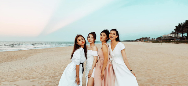 Đến dự hôn lễ trên bãi biển, ngoài gia đình và người thân còn có hội bạn thân thiết của Phương Anh Lê: Lã Thanh Huyền, Huyền Lizzie, MC Vân Hugo, Quỳnh Nga "cá sấu chúa", MC Thái Dũng, diễn viên Việt Anh...