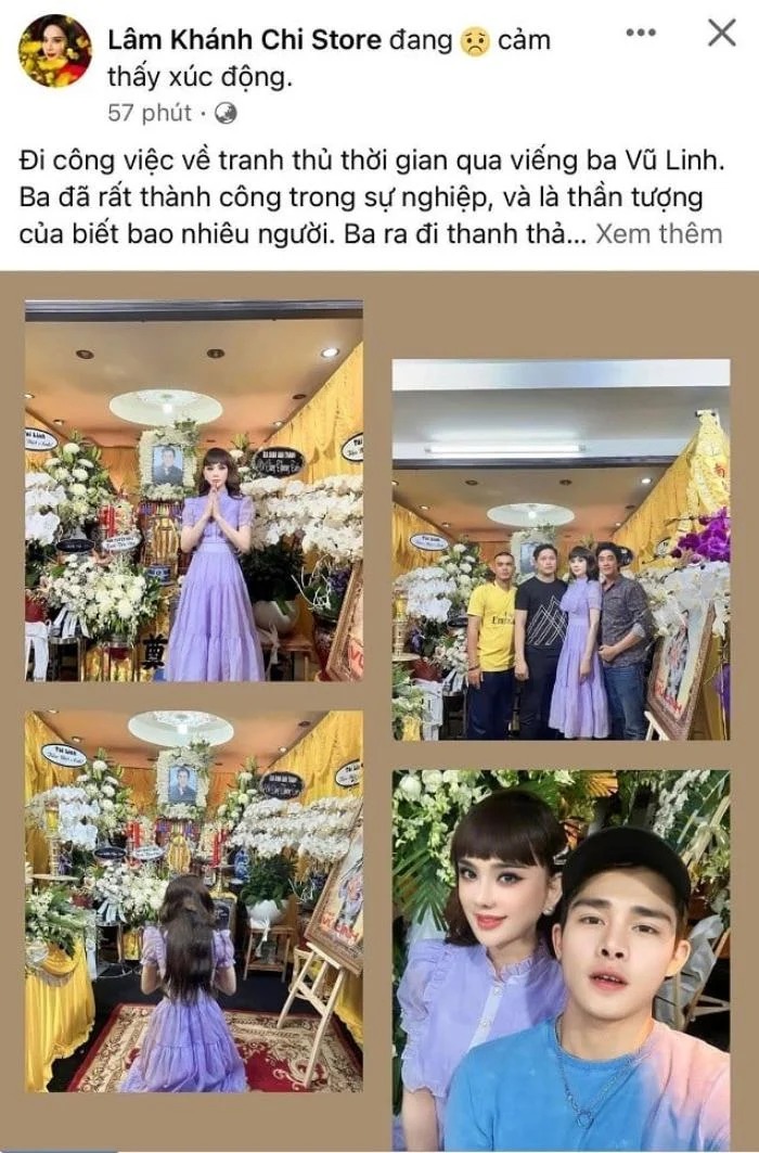 Trước đó Lâm Khánh Chi đã chủ động đăng hình ảnh cáo phó của NSƯT Vũ Linh trên page Facebook cá nhân và cho biết: "Con Khánh Chi cầu siêu cho linh hồn chú nghệ sĩ Vũ Linh ra đi thanh thản. Xin chia buồn cùng gia đình em gái ca sĩ Hồng Phượng". Ở dưới phần bình luận, nữ ca sĩ còn chủ động kêu gọi khán giả có thể qua viếng NSƯT Vũ Linh: "Ai ở gần thì đến viếng ba Vũ Linh nhé".