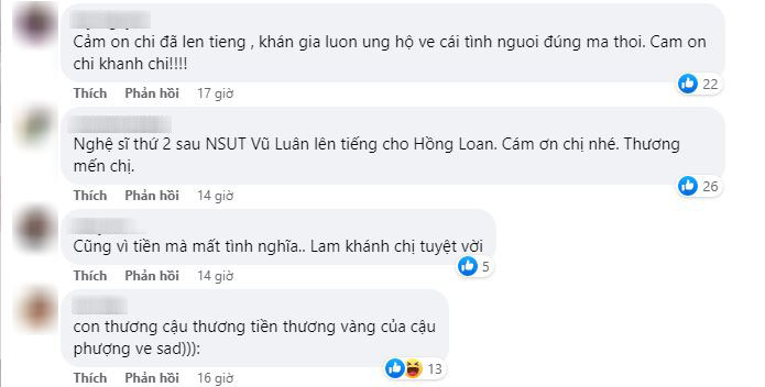Liên quan đến chuyện Hồng Loan bị người nhà phủ nhận thân thích, mới đây Lâm Khánh Chi vừa đăng đàn tỏ rõ quan điểm về vấn đề này. Người đẹp chuyển giới cho biết mình là con nuôi của NSƯT Vũ Linh, đồng thời khẳng định chắc nịch chuyện Hồng Loan là con ruột của cố nghệ sĩ. Bên cạnh đó, Lâm Khánh Chi còn bày tỏ sự phẫn nộ và bức xúc khi sự việc đang được đẩy quá xa. Nữ ca sĩ viết: "Tôi là con nuôi của ba Vũ Linh nên tôi biết Hồng Loan chính là con ruột của ba. Bé Loan có cần gì liên hệ với chị nhé. Thương ba Linh, mất rồi cũng không yên, vừa phải thôi".