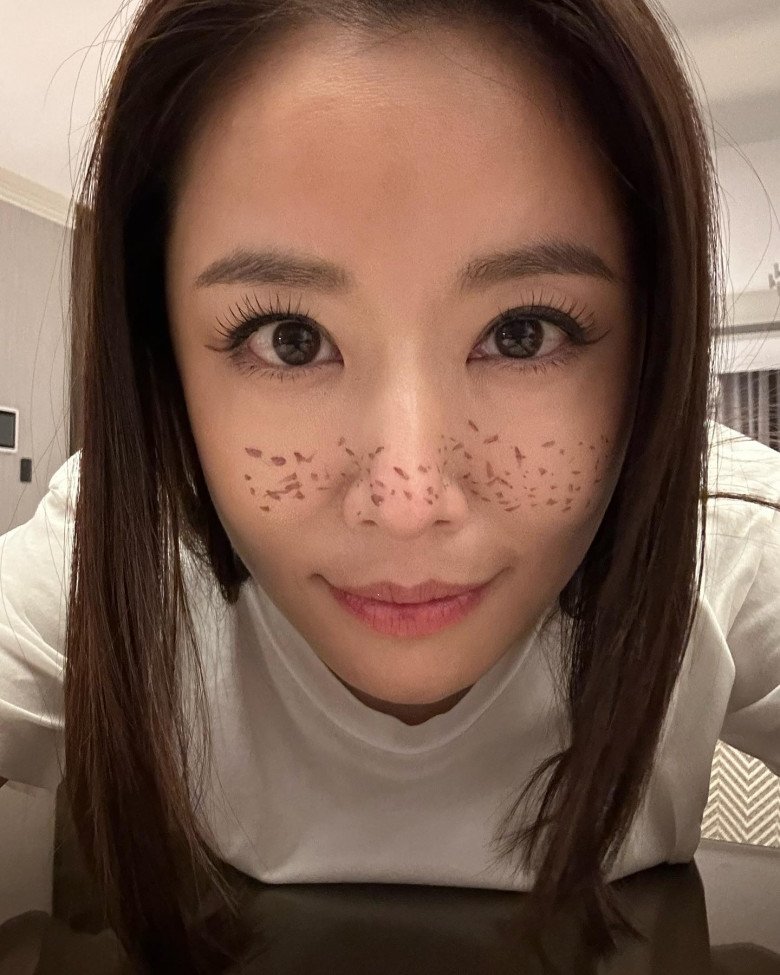 Trước đó, Lâm Tâm Như cũng khiến dân tình thích thú khi khoe bức ảnh cô chụp lại gương mặt sau khi được con gái trang điểm cho. Trên gương mặt Lâm Tâm Như nổi bật với những đường nét chấm li ti như tàn nhang rất độc đáo và không kém phần hài hước.