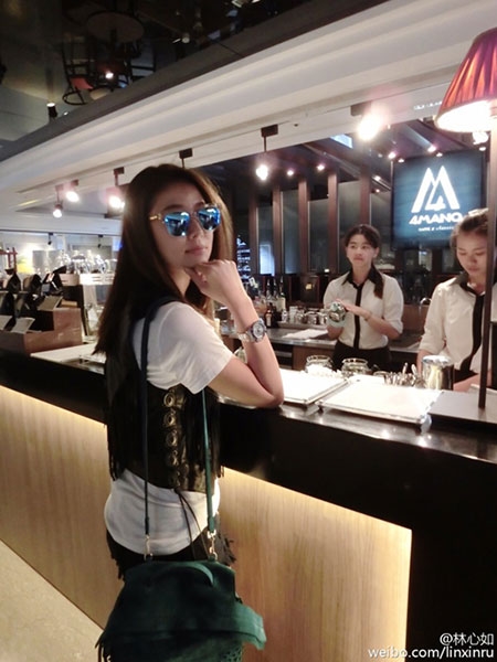 Hình ảnh Lâm Tâm Như đi cafe với bạn bè vào tối muộn được chia sẻ trên Weibo hôm 21/9, khiến fan của cô rất thích thú. Mỹ nhân "Khuynh thế hoàng phi" dường như đã hồi phục sau một thời gian đeo khẩu trang kín mít vì bị ngã, phải khâu 10 mũi ở cằm. |
