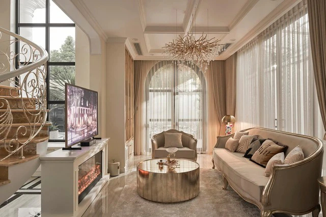 Tổ ấm mới có tông màu trắng chủ đạo, được thiết kế theo phong cách tân cổ điển tôn lên vẻ sang trọng. Dù vẫn trong quá trình hoàn thiện song có thể thấy căn nhà này sở hữu không gian rộng rãi và nội thất tiện nghi.