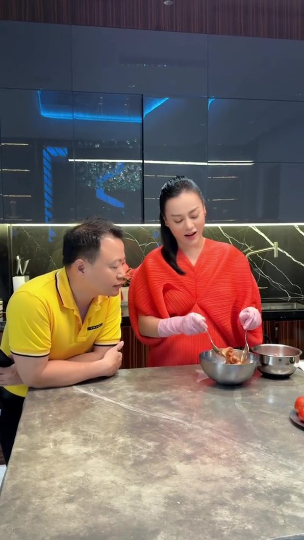 Về phần mình, Shark Bình cũng thường xuất hiện trong những clip của vợ, thoải mái tương tác và thể hiện sự thích thú với những mâm cơm vợ nấu. Mới nhất nam doanh nhân còn trực tiếp đi nướng thịt để vợ làm bún chả.