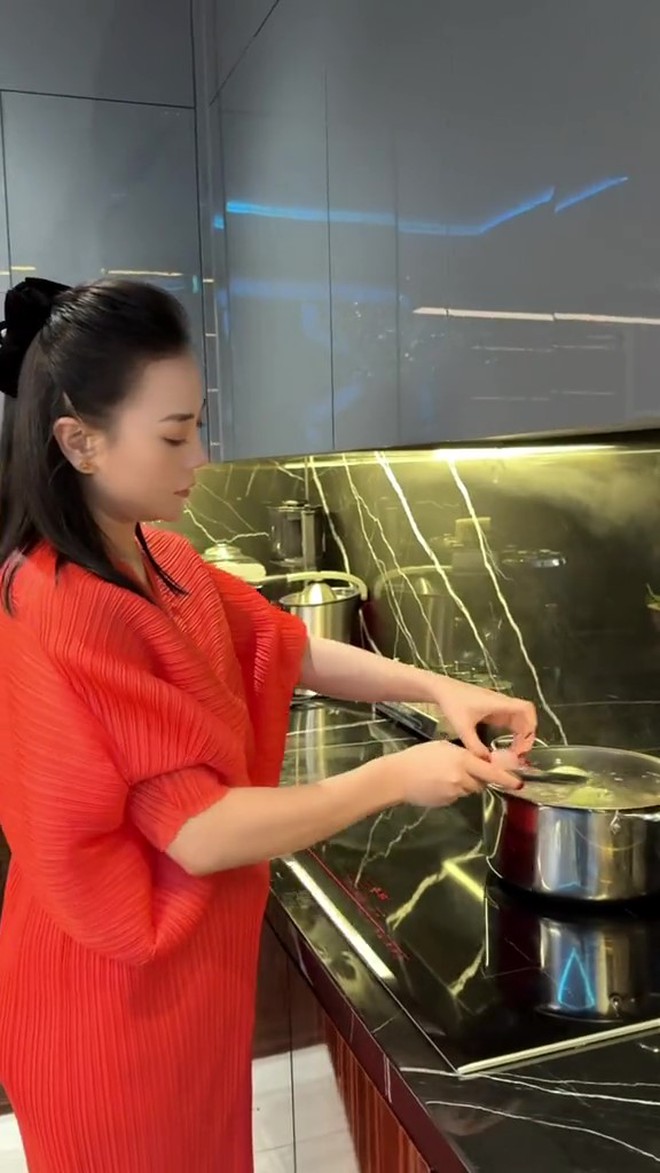- Không phải giàu mà muốn vào bếp là vào bếp đâu mọi người. Giống mình dù giàu hay nghèo cũng không đam mê nấu ăn mà bầu mệt lắm vào nấu vậy là giỏi lắm rồi.