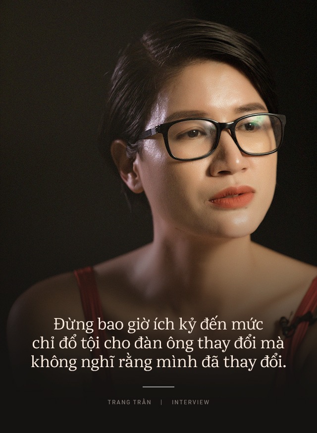 Gặp Trang Trần rồi mới thấy thấm câu nói: "Đừng đánh giá người khá qua vẻ bề ngoài". Vì sao ư? Vì có thể cách cô thể hiện ra bên ngoài là con người hơi bỗ bã, hơi vạ miệng, dễ nổi nóng, dễ "phát điên". Nhưng trong tình yêu - hôn nhân, Trang Trần cũng có những cách nhìn nhận rất thấu đáo, cá tính nhưng đủ mềm mại để khiến người đàn ông của cô tình nguyện ở lại dù ngoài kia có rất nhiều người chê bai, bài xích vợ mình.