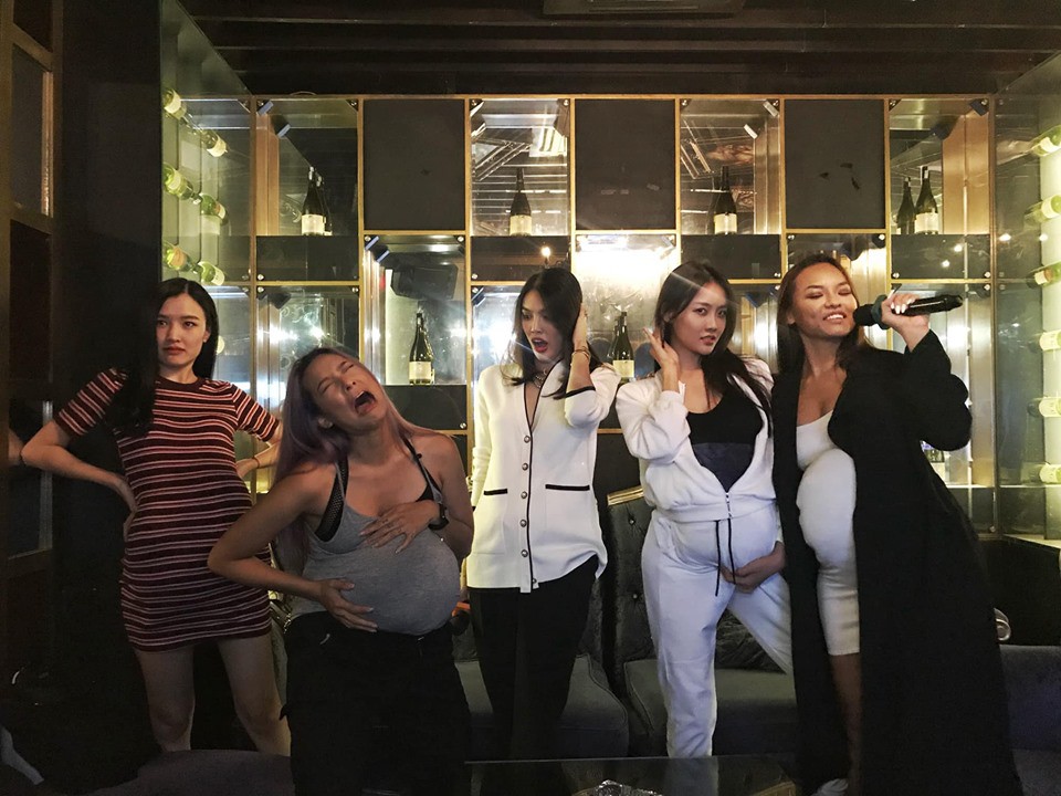 Bằng chứng là biểu cảm hài hước của dàn mỹ nhân khi giả bụng bầu lúc hát karaoke. Không những thế bên dưới bức ảnh của Lan Khuê, Tú Hảo, Phương Chi và Mỹ Duyên đều cảm thấy bật cười và muốn "độn thổ" với khoảnh khắc để đời này.