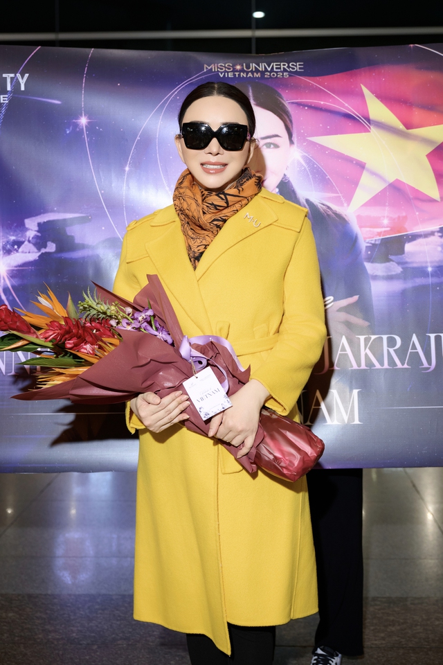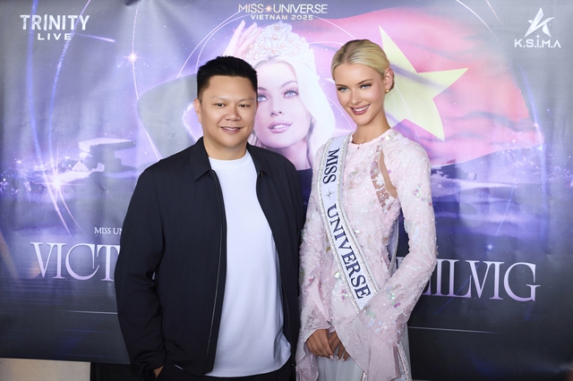 Nếu Kỳ Duyên chọn phong cách cá tính với đầm đen ôm dáng, tôn trọn body thon gọn và thần thái sắc sảo, thì Victoria Kjær Theilvig lại ghi điểm với vẻ đẹp nhẹ nhàng trong thiết kế cách tân màu hồng pastel. Ngoài Kỳ Duyên còn có Á hậu Hương Ly, ông Valentin Trần - GĐQG và Chủ tịch Miss Universe Vietnam cũng ra tận sân bay đón.