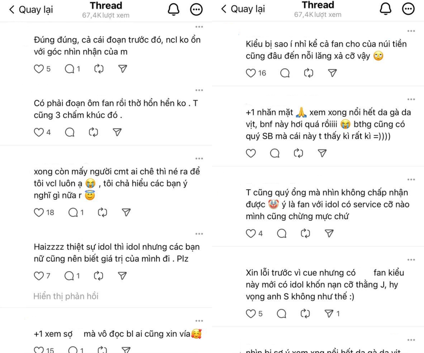Cuộc tranh luận vẫn diễn ra, chưa có hồi kết trên các nền tảng. Người hâm mộ thì cho rằng khoảnh khắc này bình thường, thậm chí khen cô nàng fangirl "thắng đời" khi được má kề má SOOBIN. Trong khi đó, một bộ phận cư dân mạng lên án hành động gần gũi quá đà. SOOBIN dạo gần đây dính tin đồn tình ái với Hoa hậu Thanh Thuỷ, khoảnh khắc trên lại càng thu hút bình luận trái chiều.