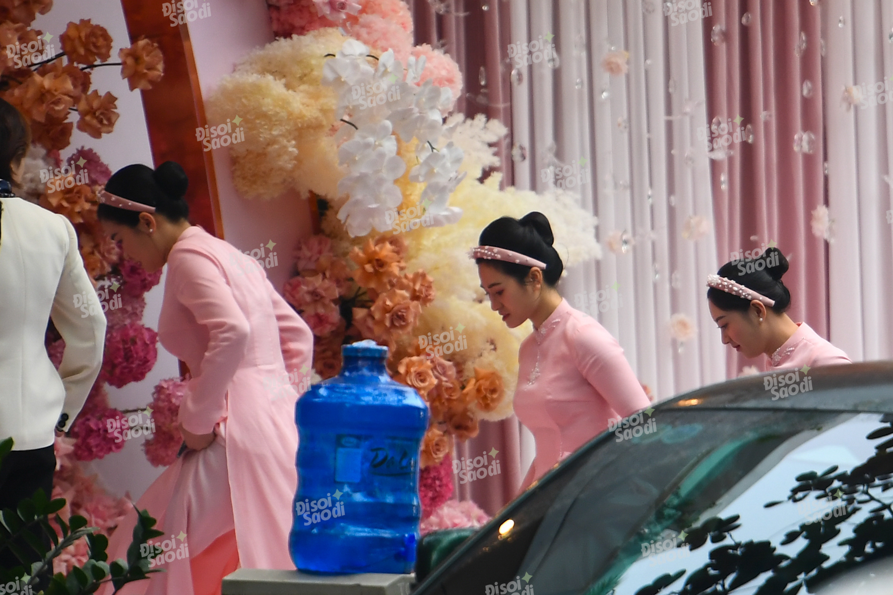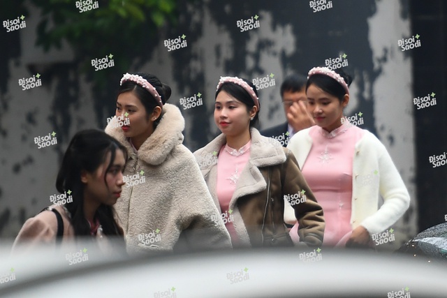 Gia đình và đông đảo người thân, bạn bè của Phương Nhi đã có mặt từ rất sớm. Theo ghi nhận của chúng tôi, vào khoảng 8h gia đình nhà trai cũng đã có mặt cùng đội bê tráp đến nhà cô dâu.
