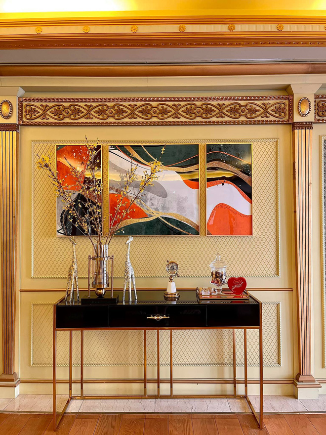 Theo tiết lộ, tổng diện tích căn hộ lên tới 280m2 với nội thất theo phong cách châu Âu cổ điển, quý phái. Khi nhìn tổng thể căn hộ, nhiều người đã nhận xét nhìn nó lộng lẫy chẳng thua kém biệt thự hay nội thất trong các toà lâu đài.