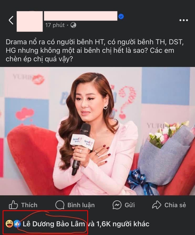 Lê Dương Bảo Lâm vừa được cộng đồng mạng phát hiện đã "thả like" vào một bài viết trên mạng xã hội khi nhắc đến Nam Thư. Cụ thể, bài đăng gồm hình ảnh Nam Thư cùng với dòng chú thích: "Drama nổ ra có người bênh HT, có người bên TH, DST, HG nhưng không một ai bênh chị hết là sao? Các em chèn ép chị quá vậy?".