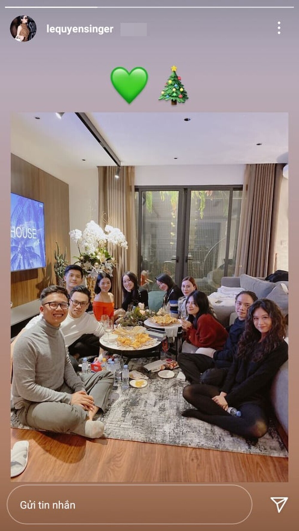Mới đây, nữ ca sĩ Lệ Quyên chia sẻ hình ảnh cùng bạn bè đón Giáng sinh đầm ấm. Điều đáng chú ý là nam người mẫu Lâm Bảo Châu có mặt và ngồi cạnh "Nữ hoàng phòng trà". Điều này một lần nữa khiến người hâm mộ thêm những suy đoán về mối quan hệ giữa Lệ Quyên và "người tình tin đồn" điển trai.