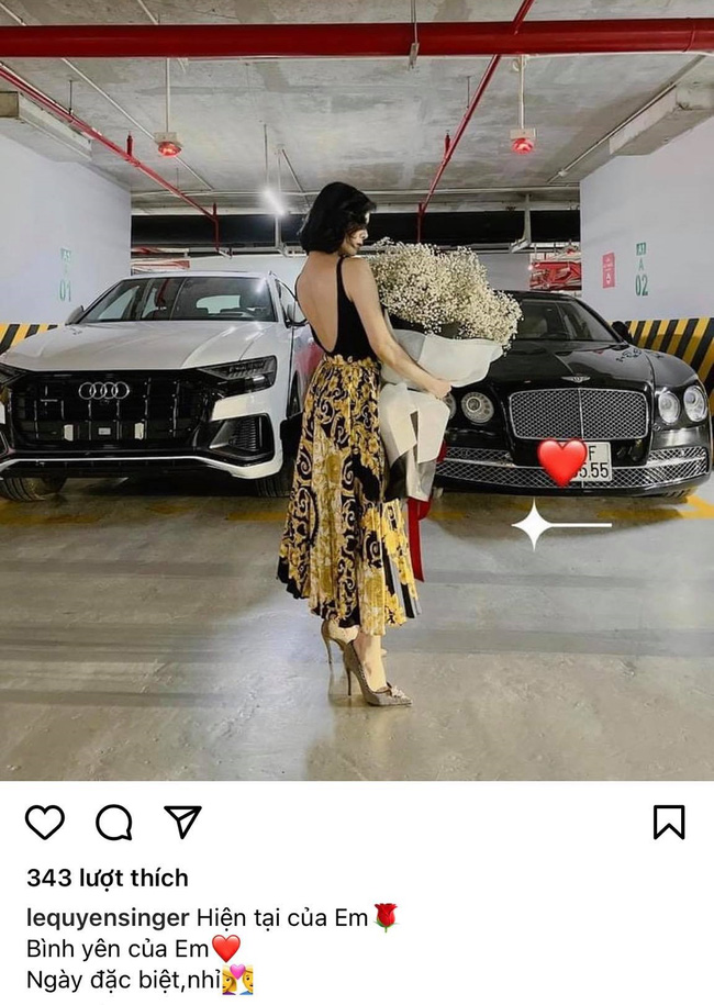 Cách đây 1 ngày, Lệ Quyên gây chú ý khi đăng hình ảnh ôm bó hoa lớn cùng dòng trạng thái: "Hiện tại của em. Bình yên của em. Ngày đặc biệt, nhỉ", kèm biểu tượng một cặp đôi. Đáng chú ý là ngay sau đó, "tình trẻ" Lâm Bảo Châu cũng đăng ảnh với bó hoa y hệt trong ảnh của Lệ Quyên cùng dòng trạng thái: "1 đóa hoa ở trong tim".