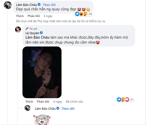 Tuy nhiên, đó chỉ là suy đoán 1 phía từ netizen, thực hư mọi chuyện ra sao chỉ người trong cuộc mới rõ. Bên cạnh đó, không ít ý kiến cho rằng đó có thể chỉ là những dòng chia sẻ vu vơ về tình yêu của Lệ Quyên, không thể dựa vào đó để khẳng định tình trạng mối quan hệ giữa cô và bạn trai.